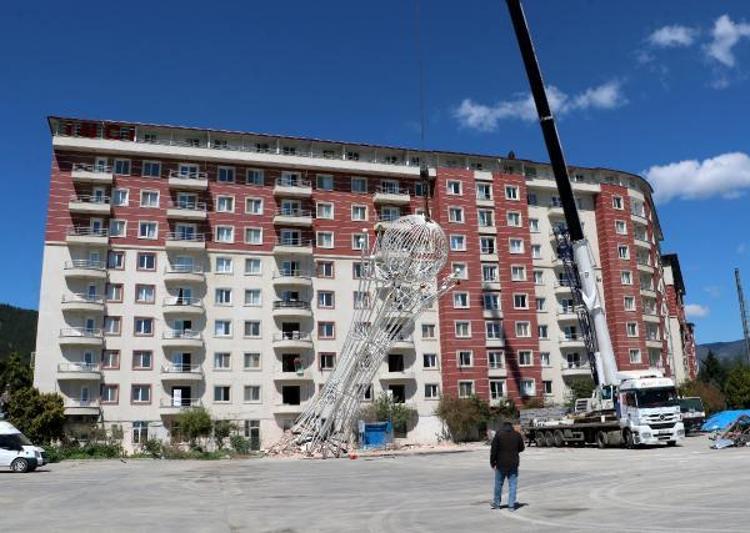 Şimdi de güvenlik amaçlı tepede duran 5 tonluk paratoneri söktürdük. Çünkü bölgede devam eden artçı depremler ve fırtınalar, bu demir kuleyi devirebilirdi. Demir kuleyi hem paratoner olarak kullanılıyorduk hem de sitemizin amblemini taşıyordu. Tekrar taktırmayacağız. Artık hurdaya gidecek. Devrilme ihtimalinden çok korktuk. Büyük bir vinç getirip söktürdük. Önemli olan can sağlığımız” dedi. (DHA)