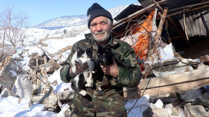 Kahramanmaraş'ın Göksun ilçesinde İzzettin Parlak (66), Elbistan merkezli 7.6 büyüklüğündeki depremde yıkılan evinde eşi Rabia Parlak'ı (66) kaybetti. Parlak, depremden sonra enkaz altında kalan 4 kedisini ise 4 gün sonra kurtardı. Parlak, "Ahırı küremeye gittim. Eşim bana 'Çok çalışma terlersin, hasta olursun. Bize bakan da olmaz, perişan oluruz' dedi. Ben de 'Tamam az çalışırım' dedim. Eve ulaşamadan deprem oldu ve yıkıldı. Eşimi kaybettim. Depremden sonra da bu kedileri iş makinesi getirerek 4 gün sonra kurtardım" dedi.