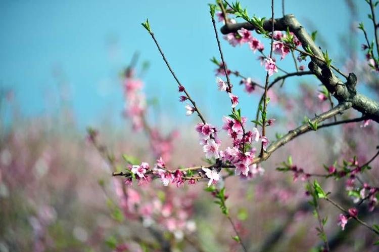 Baharın gelmesiyle birlikte Kırıkhan ilçesindeki şeftali ve kayısı bahçeleri rengarenk çiçek açtı. Depremin yıkımına uğrayan ilçede Amik Ovası'ndaki bahçeler, görsel şölen oluşturdu.