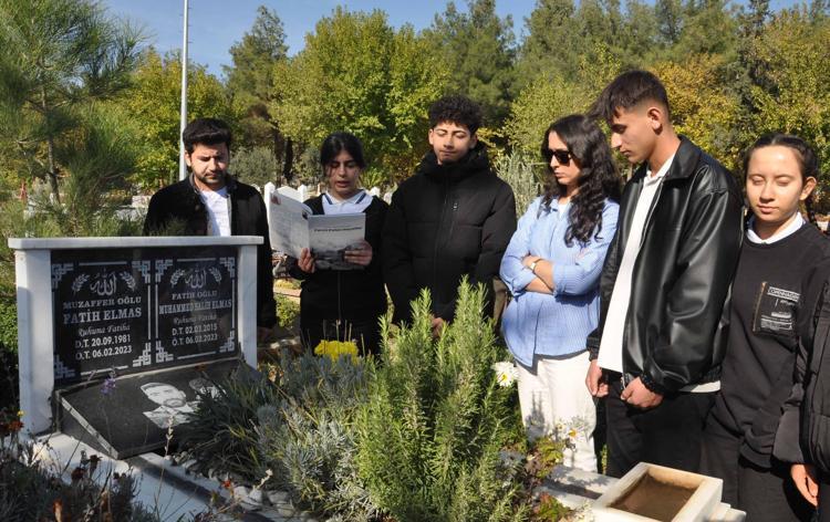Gaziantep’in İslahiye ilçesinde, depremde yaşamını yitiren rehber öğretmen Fatih Elmas (42), öğrencileri ve mesai arkadaşları tarafından mezarı başında anıldı.