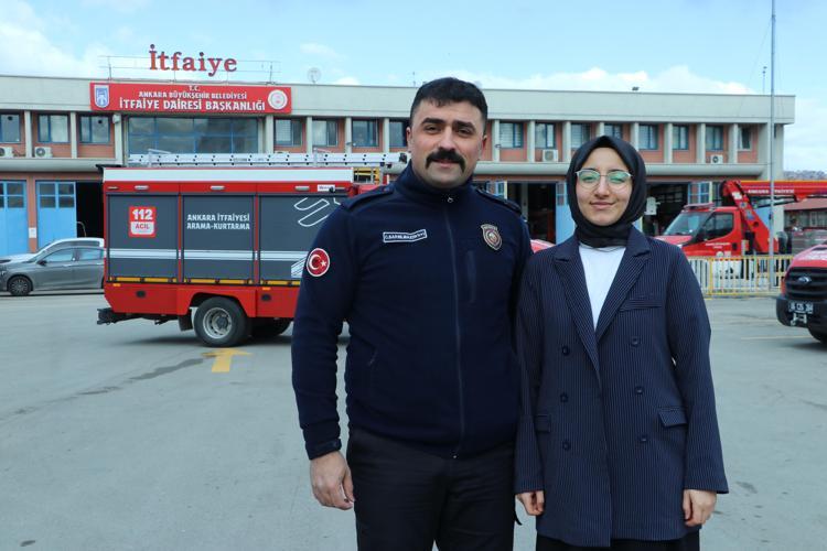 Kahramanmaraş merkezli depremlerde enkazdan 37 saat sonra kendisini kurtaran itfaiye ekibinde yer alan Cebrail Sarsılmaz (29) ile 1,5 yıl sonra evlenen Avukat Sinem Sarsılmaz (24), felaketin 2'nci yıl dönümünde eşi ve diğer itfaiyecileri ziyaret ederek, teşekkür etti.