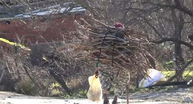 Birçok köyü birbirine bağlayan Nebiler köyünün içinden geçen karayolunda bazı vatandaşlar, Hörü Özer'in taşımakta zorlandığı odunları araçlarına alıp köydeki evine götürmeyi teklif ediyor.