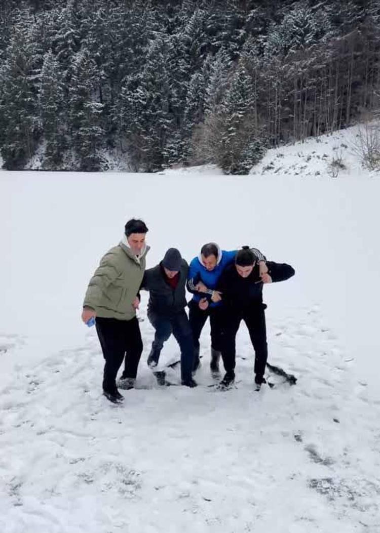 Yaşadıkları olayı anlatan gruptan Avukat Tarık Buğra Kaycı, “O gün arkadaşlarımızla Uzungöl’e gezi amacıyla gittik. Çok güzel bir kar yağışı bizi karşıladı. Hep birlikte olunca, erkeklerin bir araya geldiği zaman yaptığı çılgınlıklardan birini yapalım diye düşündük. Göl tamamen buzla kaplanmıştı. Az çok buzun kırılacağını da tahmin ettik. Kıyıdan uzakta değiliz diye tahmin ettik. Buz kütlesinin altının o kadar derin olacağını da tahmin etmedik. ‘Buz kırılır en fazla biraz suyun içine girmiş oluruz’ dedik. Arkadaşımız da bize video çekiyordu. Buz kırıldı, boylu boyunca suya batmış olduk. Paylaştığımız videonun bu kadar teveccüh göreceğini de tahmin etmemiştik. Güzel bir anı oldu, insanlar da güldü. Hemen arabaya gidip kurulandık ve eve döndük. Kimseye bir şey olmadı” dedi.