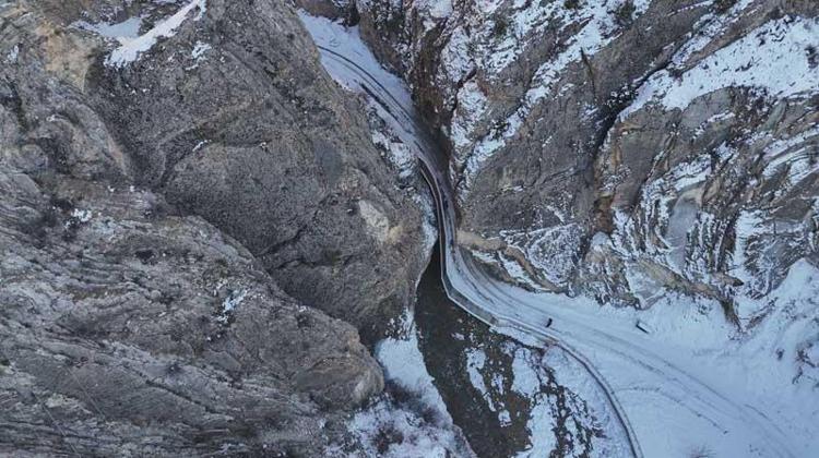 Artvin’in Yusufeli ilçesinde iki dağın kesiştiği, kanyonu andıran kayalıklar arasında yer alan yoldan araçlarıyla geçenler, korku ve adrenalini aynı anda yaşıyor. Yöre halkı son günlerde artan heyelan ve kaya düşme riskine karşı, dev kayalıklar arasından karlı yolları aşıp, köylerine ulaşıyor.