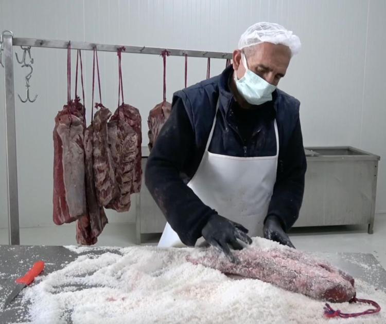 Kurdukları tesis hakkında bilgi veren işletme müdürü Alparslan Ercan, 750 metrekare kapalı alan üzerine kurulan tesiste sucuk, pastırma, kavurma üretimi yapıldığını söyledi.