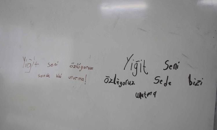 Duygusal anların yaşandığı sınıfta öğrenciler gözyaşlarına hakim olamadı. Yiğit'in hastanede yattığı sürede fotoğraflarıyla ‘geçmiş olsun’ panosu hazırlayan arkadaşları, ölümünün ardından tahtaya ‘Yiğit seni özlüyoruz, sen de bizi unutma’ notu yazdı.