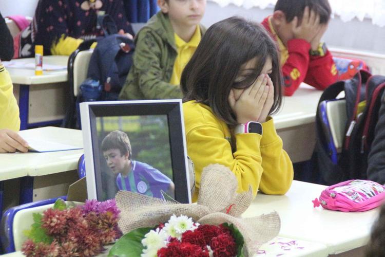 Rize’de antrenman öncesi kale direğinin üzerine devrilmesi sonucu ağır yaralanıp, kaldırıldığı hastanede hayatını kaybeden Yiğit Demirel (9), okulunda anıldı. Arkadaşları, sırasına çiçek ve top bıraktıkları Yiğit için gözyaşı döktü.