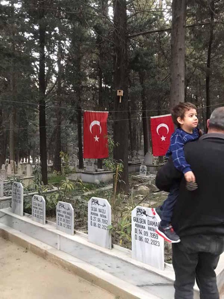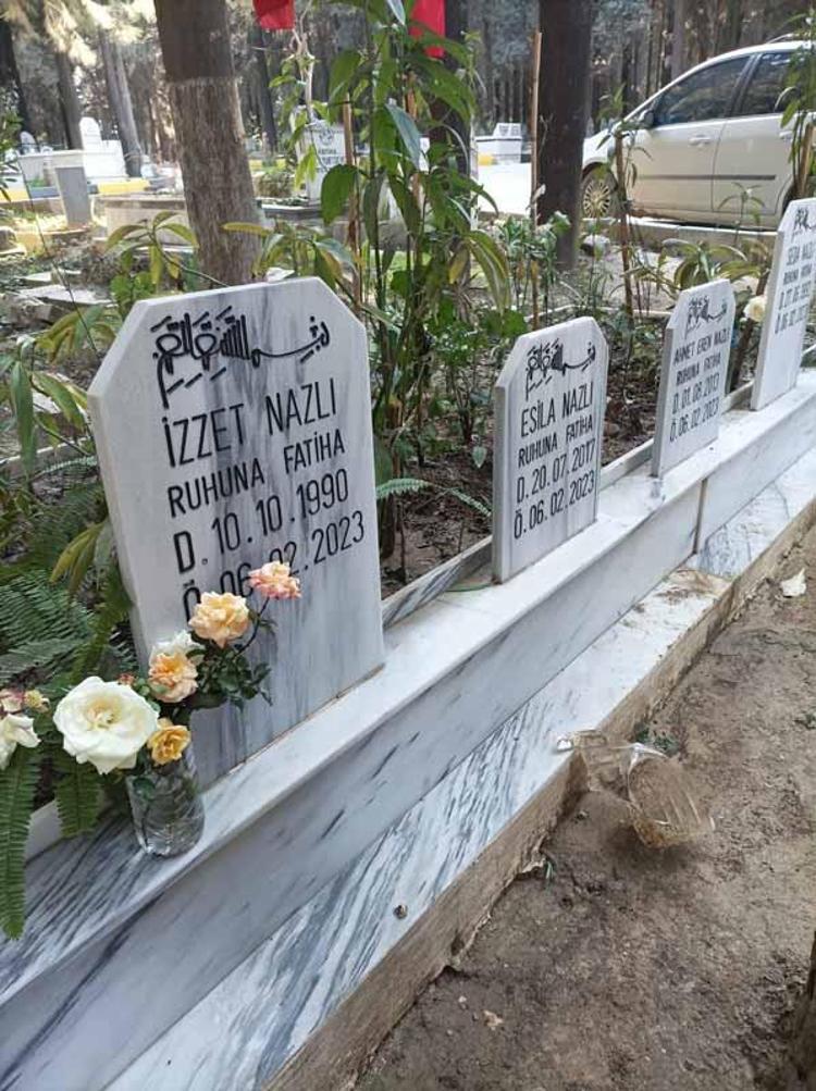 Depremin 2’nci yıl dönümünde annesi Fatma (50), babası Fecir (60) ve kardeşi Yusuf Nazlı (33), saat 04.17'de İzzet Nazlı ve ailesini mezarı başında ziyaret edip, gözyaşı döktü.