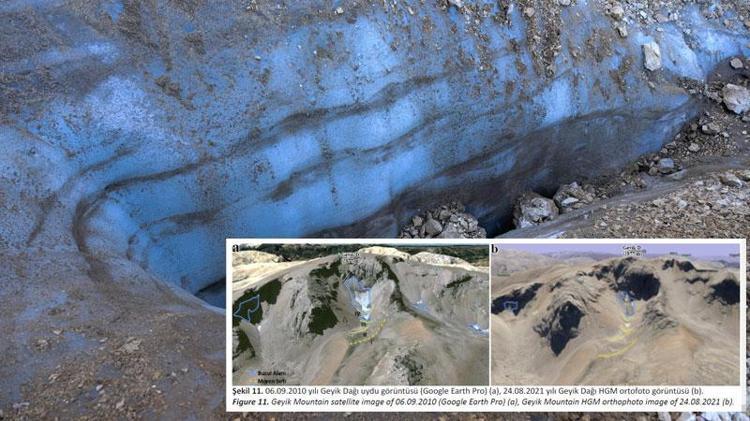2010 yılından 2023 yılına kadar yani 13 yıllık sürede ise buzulların yüzde 82’sinin eridiği görülmüştür. Yapılan analizler neticesinde Geyik Dağı’nda yer alan buzulların yakın tarihler içerisinde eridiği tespit edilmiş olup günümüzde etkisini giderek attıran küresel ısınma nedeniyle önümüzdeki uzak olmayan yıllarda bu buzulların da tamamen ortadan kalkacağı ifade edilmelidir.”