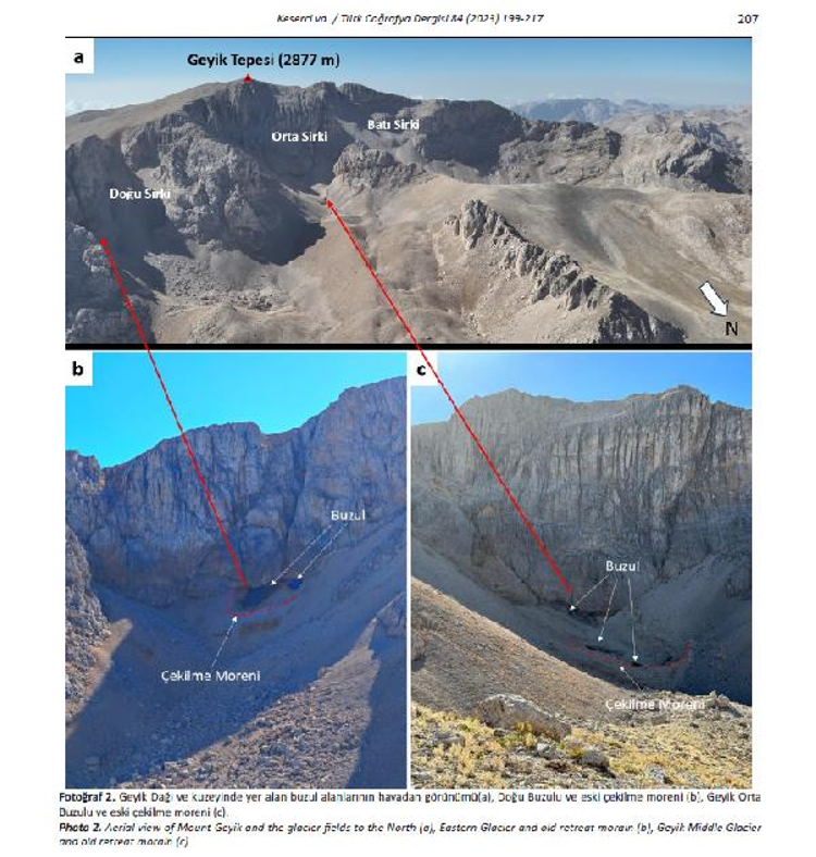 Buzul tabakasının 21 bin yıl önce gerçekleşen son buzul çağından kalma olduğunu ifade eden makalenin baş yazarı Dr. Ferhat Keserci, “Yazılı ve görsel medyada çıkan haberler üzerine halihazırda TÜBİTAK tarafından desteklenen projemizle Geyik Dağları’nda arama çalışması gerçekleştirdik. Termal kamera ve uzaktan algılama yöntemleriyle bölgede güncel buzulun varlığını tespit edip bilimsel bir yayına dönüştürdük.