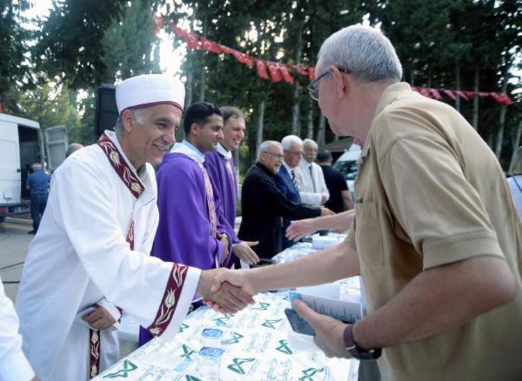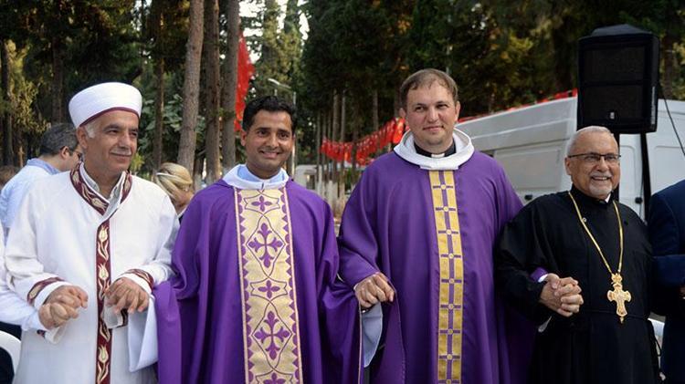 Mersin'de Kurban Bayramı’nın üçüncü gününde Şehir Mezarlığı'nda düzenlenen ‘Dinler Buluşması’ etkinliğinde, Müslüman, Hristiyan din adamları vatandaşlarla bayramlaştı.