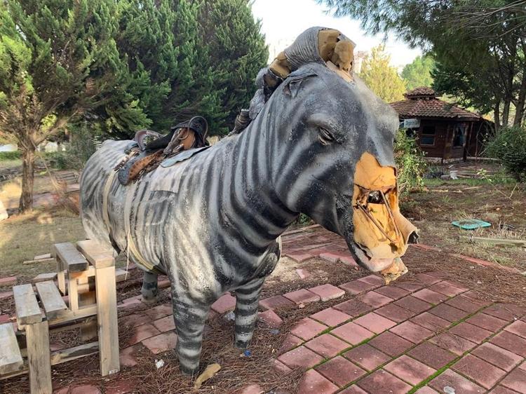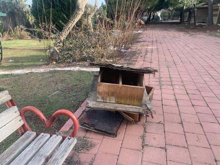 Öte yandan parkta, giriş turnikelerinden çöp kutusuna, bankalara ve dinozor figürlerine kadar birçok malzemenin zarar gördüğü harabeyi andıran bir görüntü dikkati çekti.