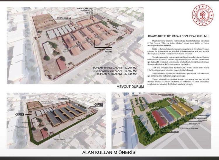 Cumhurbaşkanı Recep Tayyip Erdoğan'ın Diyarbakır ziyaretinde ‘müze olacak’ müjdesini verdiği ve Adalet Bakanı Bekir Bozdağ’ın kapısına kilit vurarak anahtarını Kültür ve Turizm Bakanı Mehmet Nuri Ersoy’a verdiği Diyarbakır E Tipi Cezaevi, Müze Müdürlüğü’ne devredildi. Cezaevinin bazı yapılarının yıkımı için kurul kararı çıkarılırken bazılarının da güçlendirilmesi yapılacak. Toplam parsel alanı 49 bin 204 metrekare, kapalı alanı da 16 bin 462 metrekareden oluşan cezaevi, çalışmaların ardından ‘Anı ve Etnografya Müzesi’ olarak hizmet verecek.