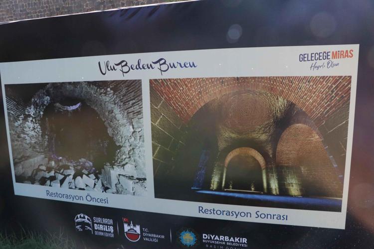 ‘Diriliş’ sloganıyla başlatılan ve 6’ncı etabına girilen çalışmalarda bugüne kadar surların yaklaşık 2 bin metrelik bölümü ve 17 burcu restore edildi. Çalışmalarda yapılan kazılarda da birçok tarihi eser ve yapı gün yüzüne çıkarılarak Diyarbakır Müze Müdürlüğü’ne teslim edildi.