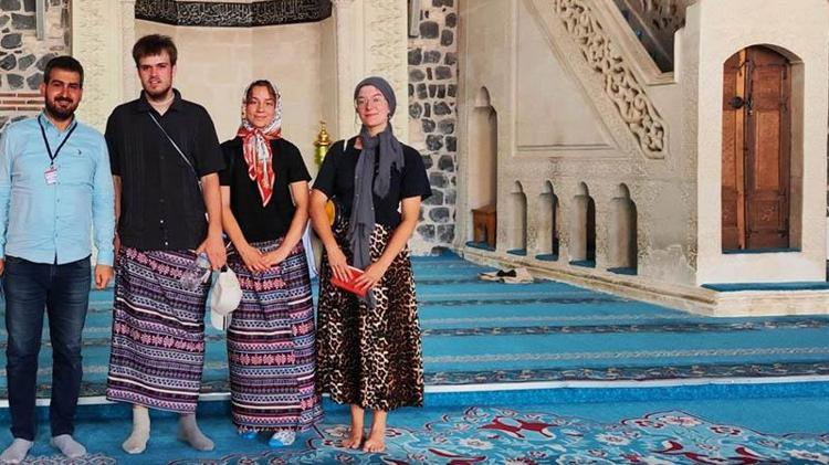 Diyarbakır Ulu Camii’nde erkek turistler, kadınlar için ayrılan etekleri giydi