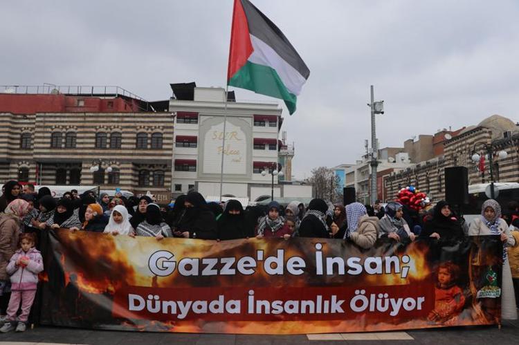 Diyarbakır ve Mardin’de, kılınan cuma namazlarının ardından İsrail’in Filistin’e yönelik saldırıları protesto edildi. Diyarbakır’da Cuma namazı sonrası, tarihi Ulu Cami önünde ‘Ümmetin emaneti Kudüs ve Gazze’ temalı basın açıklaması düzenlendi. Alanda toplananlar, ellerinde Filistin ve Tevhit bayrakları taşıyarak sık sık tekbirler getirdi, İsrail aleyhine sloganlar attı.