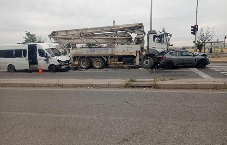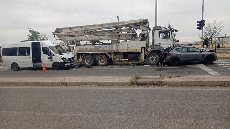 Diyarbakır’da cip, beton pompa aracı ve işçi servisi minibüsünün karıştığı zincirleme kazada 11 kişi yaralandı.