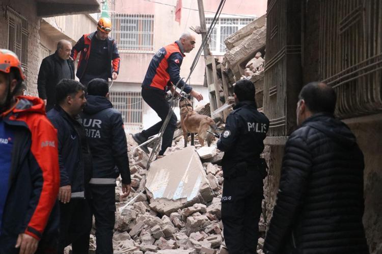 Diyarbakır'ın Sur ilçesi İskenderpaşa Mahallesi'nde çöken ağır hasarlı 5 katlı binanın enkazında arama- kurtarma köpeği ile yapılan çalışmalar, herhangi birinin enkaz altında kalmadığının tespit edilmesi üzerine sonlandırıldı.