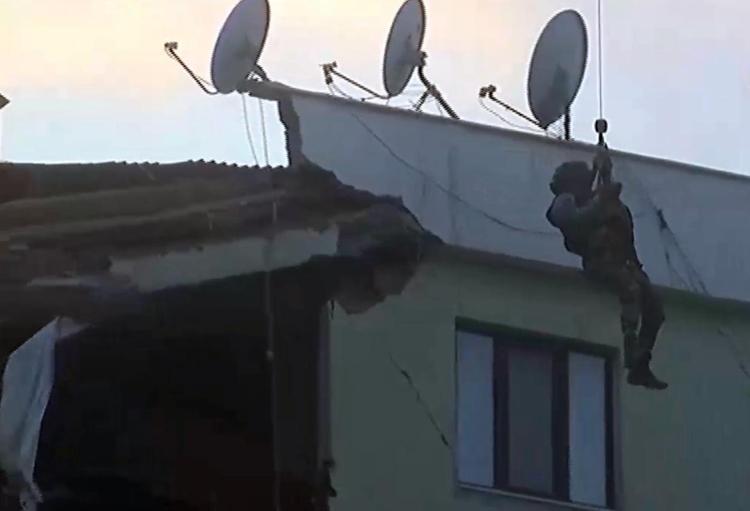 Galeria Sitesi’nin üzerinde duran helikopterlerden birinden halat yardımıyla indirilen personel, kedilerin görüldüğü katlarda inceleme yaptı.
