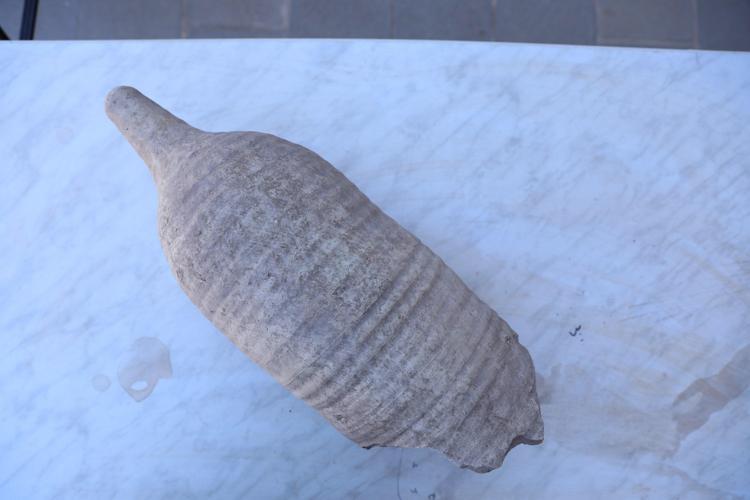 Bölgede ilk kez görüldüğü için önem arz eden zeytinyağı veya şarap taşımacılığında kullanılan sivri dipli amforanın Geç Roma- Erken Bizans Dönemi'ne ait olduğu değerlendiriliyor.