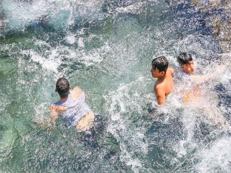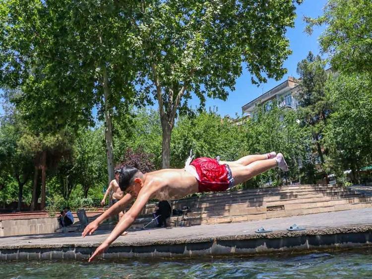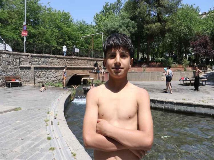Diyarbakır’ın Sur ilçesinde, hava sıcaklıklarının artmasıyla birlikte çocuklar, tehlikeli ve yasak olmasına rağmen tarihi Anzele Parkı’ndaki süs havuzuna girip serinlemeye başladı. Havuzda yüzen çocuklardan Ebubekir Güzel, “Yazın buralar dolup taşacak ve yüzmeye yer bulamayız. O nedenle şimdi sakin ve ben de şimdi geldim” dedi.