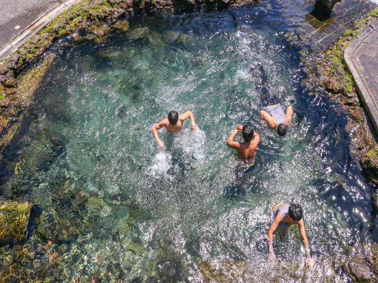 Termometrelerin 19 dereceyi gördüğü kentte, çocuklardan bazıları yaklaşık 3 metre yükseklikten 1 metre derinliğindeki suya atladı. Kimi çocuklar da suya girdikten sonra havuz kenarındaki taşlara uzanarak güneşlendi.
