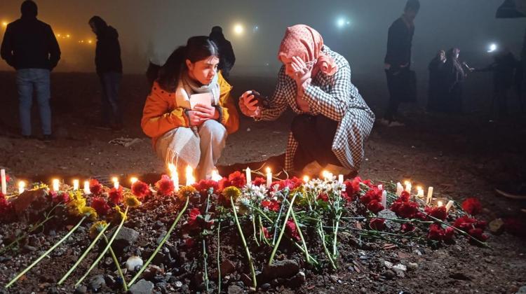 Diyarbakır’da depremde ölenler için Galeria Sitesi’nin enkazının kaldırıldığı alanda anma