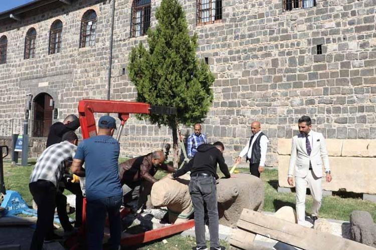 Diyarbakır Müzesi’nde restorasyonu tamamlanan ve ‘Emojili asker mezar taşı’ olarak nitelendirilen bazalt eser, ilk kez ziyarete açıldı.