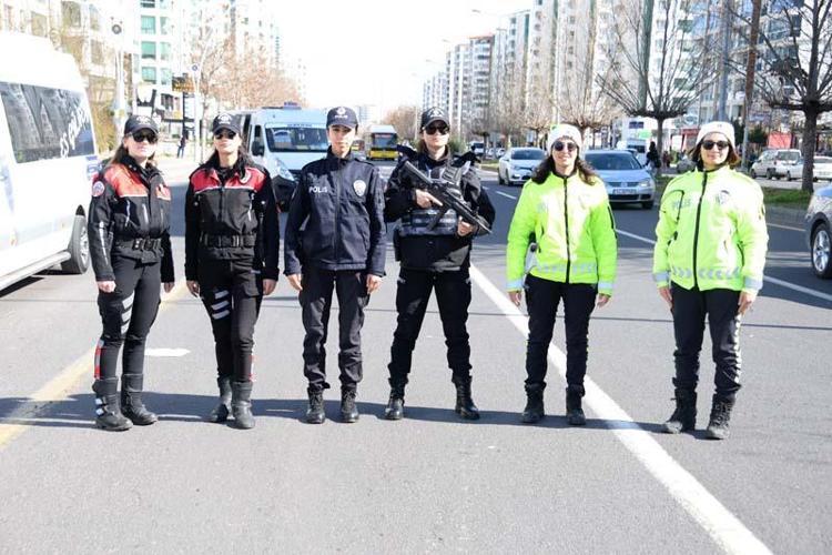 Diyarbakır'da İl Emniyet Müdürlüğü'nce 8 Mart Dünya Kadınlar Günü’ne dikkat çekmek amacıyla, tamamı kadınlardan oluşan uygulama ekibi oluşturuldu. Trafik, çevik kuvvet, yunus, narkotik ve devriye timlerinden seçilen 12 kadın polis, 2 grup halinde kentin belirli noktalarında uygulama ve denetim gerçekleştirdi. Uygulamada durdurulan sürücülerden Funda Kaya, “Dünyaya kadın olarak gelmek ve gerçekten kendi ayaklarımızın üzerinde durduğumuzu göstermek çok güzel. Biz var olduğumuz için herkes var. İyi ki varız ve hep var olacağız” dedi.