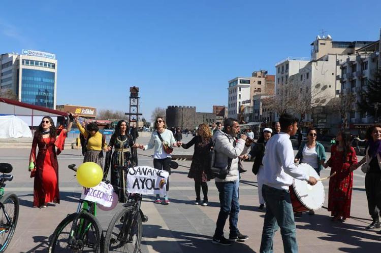 Kadınlar daha sonra Diclekent’ten Sur ilçesindeki Dağkapı Meydanı’na kadar yaklaşık 10 kilometre boyunca pedal çevirdi. Dağkapı Meydanı’nda da bir süre davul zurna eşliğinde halay çeken grup, daha sonra dağıldı.