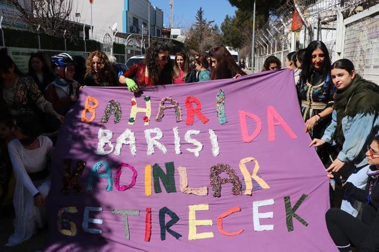 Burada grup adına konuşan Duygu Özbay, “Artık barış çok fazla dile getirilmeye başlandı. Dolayısıyla biz de bugün demokratik, barışçıl, özgür, eşit bir toplum yaratmaya dair her çağrıyı desteklediğimizi ve bugün bu çağrıyı güçlendirecek, sürdürülebilir bir barış inşasını güçlendirebilecek politikaların hem kamusal hem siyasal hem de ekonomik alanda hem de idare alanında bir an önce hayat bulması için mücadele etmeye devam edeceğiz” dedi.
