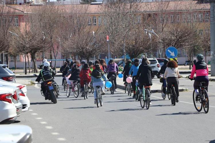 Diyarbakır’da kadınlar, ‘8 Mart’ için pedal çevirdi