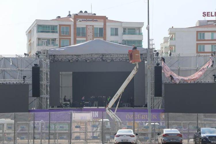 Diyarbakır’da DEM Parti öncülüğünde 21 Mart’ta düzenlenecek nevruz kutlamalarında 3 ton odun yakılacak. Sahnenin önüne 3 metre yüksekliğinde tel örgü konulurken, 136 bin metrekarelik alanda toplamı 10 kilometreyi bulan bariyerlerin kurulacağı kutlamalarda yaklaşık 10 bin polis görev yapacak.