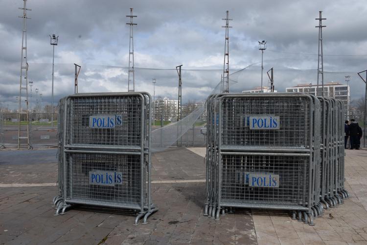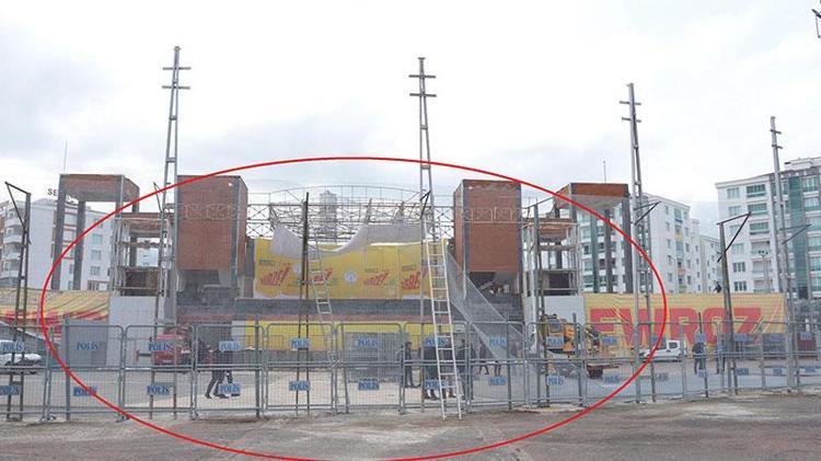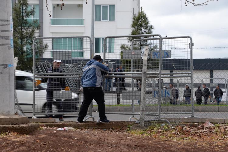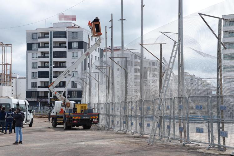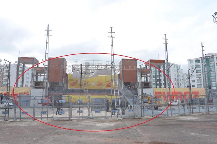 Zırhlı araçların da konuşlandırılacağı alanda, geçen yıl 10 polisin atılan taşlardan yaralandığı olayların tekrar yaşanmaması adına görevlilerin dışında kimsenin girmemesi için sahnenin önüne 4 metrelik tel örgü konuldu. İl Emniyet Müdürü Fatih Kaya da alana gelerek yapılan çalışmaları yerinde inceledi.