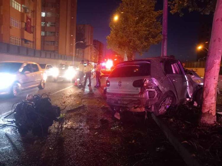 Diyarbakır’ın Yenişehir ilçesinde önce refüje, ardından ağaç ile aydınlatma direğine çarpan otomobildeki 3 kişi yaralandı.