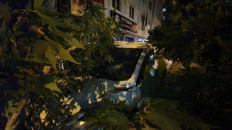 Diyarbakır'da üzerine ağaç devrilen 3 araç hasar gördü