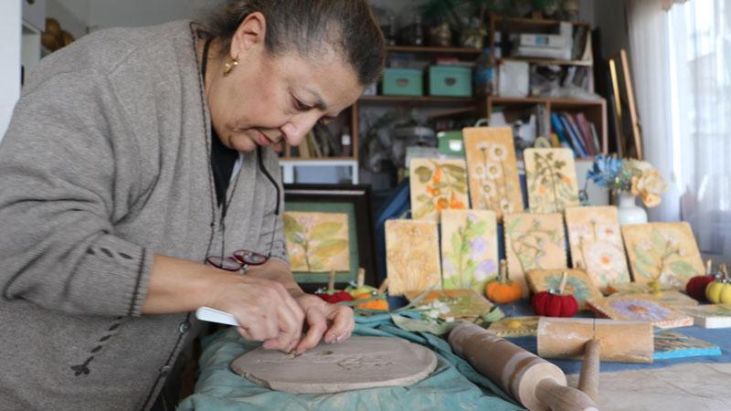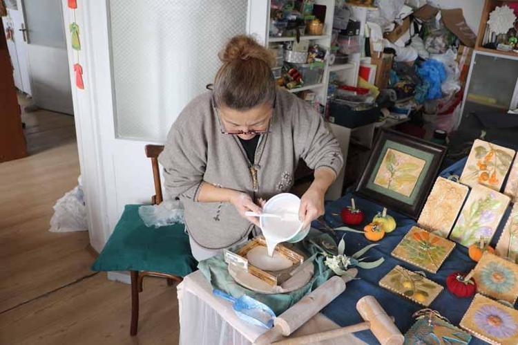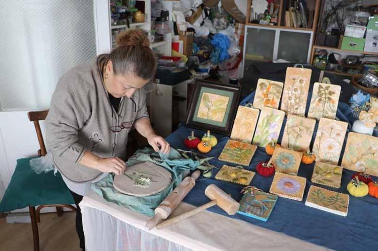 İlkadım ilçesinde atölyesi bulunan Heykeltıraş Füsun Yalçın, vitray çalışmalarının yanı sıra plaket tasarımları, heykel ve hediyelik ürünler üretiyor. Yalçın'ın atölyesinde; doğadan toplanan çiçekler, yapraklar, dallar önce çamurla kalıplanıyor ardından alçı döküm yapılarak şekillendiriliyor. Kuruma süreci tamamlandıktan sonra kompozisyonlar oluşturuluyor.