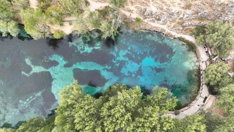 Cumhurbaşkanlığı kararı ile 'Hassas korunacak alan' olarak tescil edilen, dipten kaynaklarla beslenen ve derinliği 15 metreyi bulan gölde, AFAD ekipleri dip ve yosun temizliği yaptı.