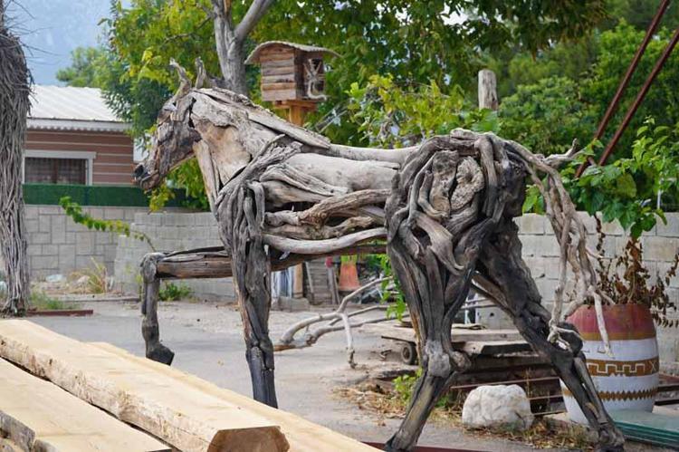 Kentte yaşayan driftwood sanatçısı Osman Dönmez, orman, dağ ve dere yataklarında doğanın kendi döngüsüyle devrilmiş veya dağılmış ağaç parçalarını toplayarak heykeller yapıyor. Doğadan aldığı parçaları yeniden doğaya kazandıran Dönmez, "Doğayı sevdiğim için doğadan ilham alıyorum. Bu malzemeleri birleştirip, hayvan figürlerine dönüştürüyorum" dedi. Atık ağaçlardan yaptığı heykellerin yapım sürecinin uzun ve titiz bir çalışma gerektirdiğini anlatan Dönmez, "Topladığımız parçaları temizleme aşamasından geçiriyoruz, sonra kaide veya iskelet üzerine yerleştirme süreci başlıyor. Günde 3 ila 5 parça üzerinde çalışıyorum. Bir heykelin tamamlanması yaklaşık 1 ayı buluyor" diye konuştu.