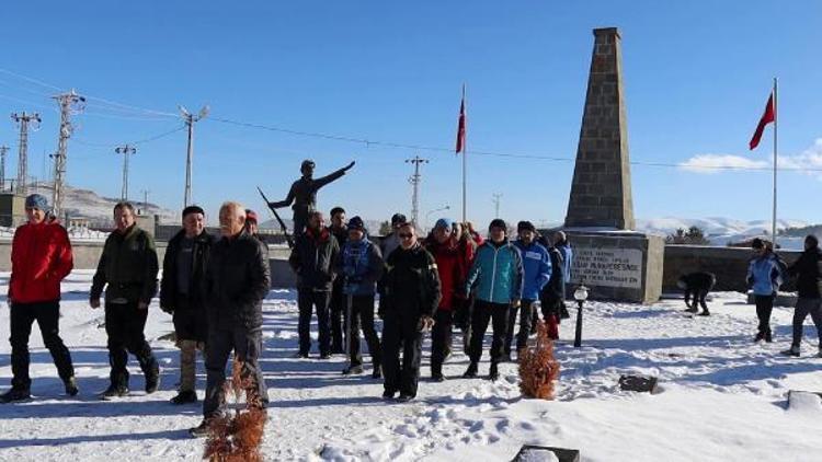 Erzurum Doğa Yürüyüş Grubu, Palandöken Masterler Koşu Grubu ile Oltu Doğaseverler Grubu üyeleri şehit askerleri anmak için Sarıkamış Şehitliği'ne yürüyüş düzenledi. Yürüyüşün ardından 2 bin 634 rakımlı Bayraktepe'ye tırmanan doğaseverler burada saygı duruşunda bulundu.