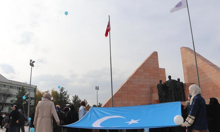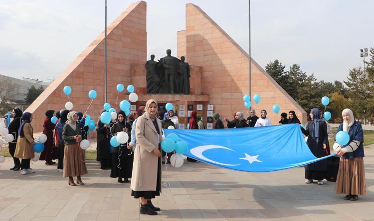 Atatürk Üniversitesi İlahiyat Fakültesi Yeni Eksen Öğrenci Kulübü, Doğu Türkistan'da yaşanan zulme dikkat çekmek amacıyla kampüsteki Gençlik Anıtı önünde mavi ve beyaz balonlarla eylem yaptı. Öğrencilere destek veren İlahiyat Fakültesi Öğretim Üyesi Prof. Dr. Mehmet Göktaş, kulübün Doğu Türkistan'la ilgili farkındalık oluşturmak için eylemi düzenlediğini söyledi. Doğu Türkistan'ın bayrağının rengi olan mavi beyaz balonları gökyüzüne bırakılacağını belirten Prof. Dr. Göktaş, gökyüzünün özgürlüğü sembolize ettiğini ifade etti.