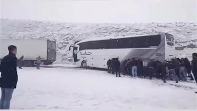 Diyarbakır’da da kar etkisini sürdürdü. Diyarbakır Silvan kara yolu Seyrantepe mevkisinde yokuşta kayan 26 aracın karıştığı zincirleme kaza meydana geldi. Araçlarda hasar oluşurken, 9 kişi de hafif yaralandı. Diyarbakır Çevre Yolu’nda yolcu yokuşu çıkamayınca, inen yolcular tarafından itilerek ilerledi.