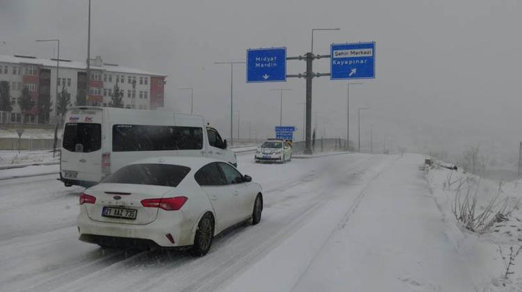 Mardin’de sabah saatlerinde etkili olan kar yağışı, günlük yaşamı olumsuz etkiledi. Beyaza bürünen kentte yola çıkanlar zorluklar yaşadı. Kar yağışının ardından peş peşe hasarlı kazaların meydana geldiği kentte, Kızıltepe-Artuklu kara yolundaki Türkmenler Geçidi trafiğe kapandı. Otogar Kavşağı’nda ise şoförünün kontrolünden çıkan TIR'ın kupası ile dorsesi birbirinden ayrılırken, yol trafiğe kapandı.