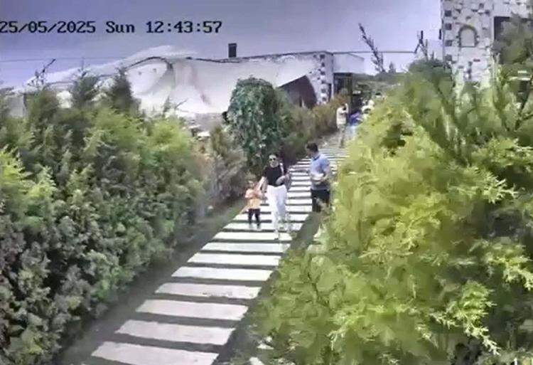 Görüntülerde; çiftin kız çocuklarıyla kapıya doğru yürüdükleri, bu sırada bölgede etkili olan kuvvetli rüzgar nedeniyle ağaçların savrulduğu görüldü.
