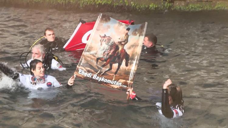 Türk Balık Adamlar Spor Kulübü ve Derinlere Saygı Dalış Topluluğu üyesi dalgıçlar Türkiye Cumhuriyeti’nin kuruluşunun 100. yıldönümü kutlamaları kapsamında Dolmabahçe Sarayı önünde dalış gerçekleştirdi.