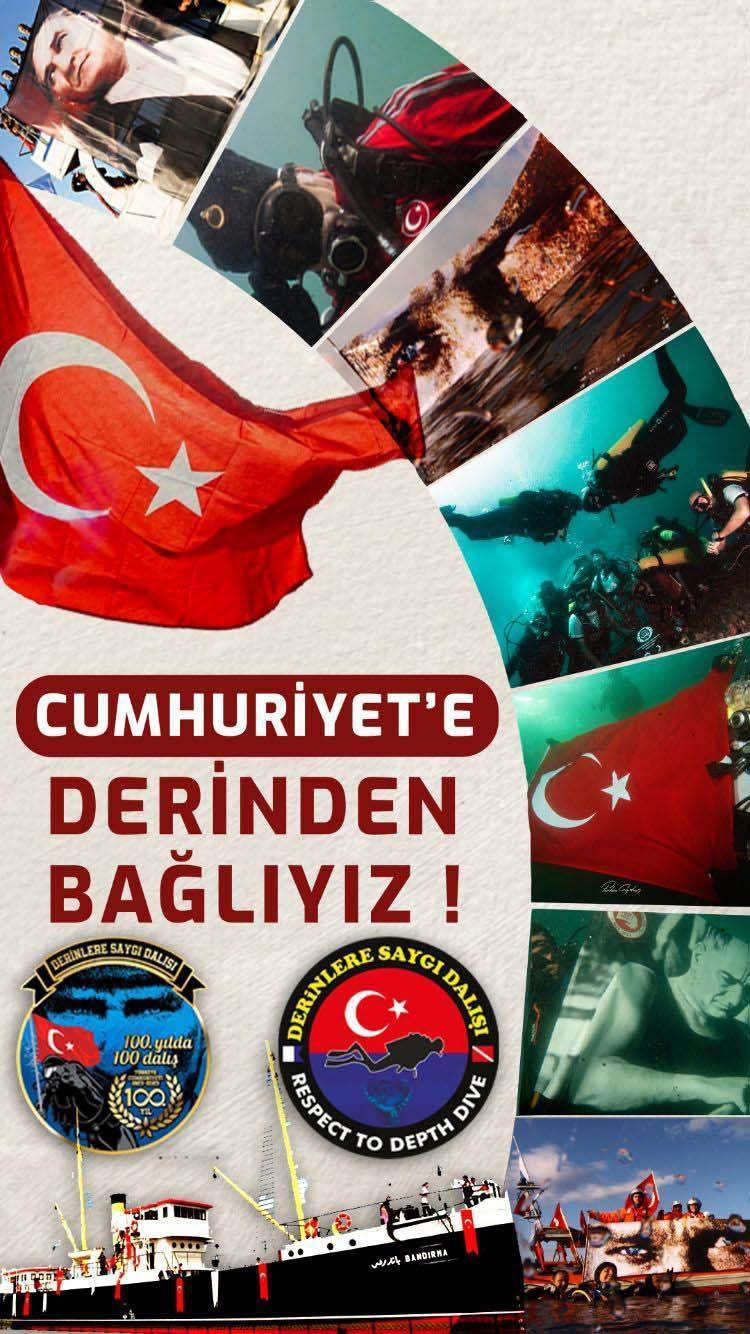 Dalış etkinliğine katılan Eski Devlet Bakanı Kürşat Tüzmen, “Biz, Derinlere Saygı Dalış Topluluğu olsun, Türk Balık Adamlar Kulübü olsun, diğer bütün arkadaşlarımız, katılan herkes elinden geleni yaptı. Koordineli bir şekilde güzel bir dalış gerçekleştirdik. Suyun altında da suyun üstünde de organizasyon iyiydi. Burada amacımız bir farkındalık yaratabilmek. Cumhuriyet’in 100. yılı çok önemli, 100 yıla gelmiş bir Cumhuriyet artık sürdürülebilir bir cumhuriyettir. Artık, bundan sonrası için endişe duyulmaması gereken bir Cumhuriyettir.