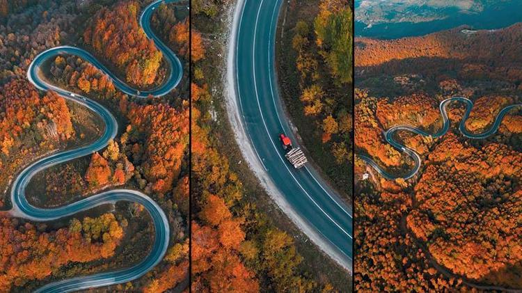 Bursa ile Kütahya'nın doğal sınırını oluşturan Domaniç Dağları'ndaki kıvrımlı yolların, mevsim renkleriyle oluşturduğu manzara, dronla havadan görüntülendi. İnegöl-Domaniç arasındaki 45 kilometrelik yolun 17 kilometresini oluşturan 'kıvrımlı yol', 1500 rakımlı Kocayayla Geçidi'ne ulaşıyor. Sürücüler ve yolcular, Kütahya'dan Bursa'ya doğru inerken, Domaniç Dağları'nın manzarasına tanık oluyor. Sürücüler, çevresindeki ağaçların sonbahar renklerine büründüğü manzaranın keyfini çıkararak yolculuk yapıyor. Yol, manzarasıyla doğa ve fotoğraf tutkunlarının da uğrak noktası haline geldi. Fotoğraf sanatçısı Özcan Aslan’ın objektifine yansıyan yol, çevresindeki mevsim renkleriyle yoldan geçenlerin ilgisini çekiyor.