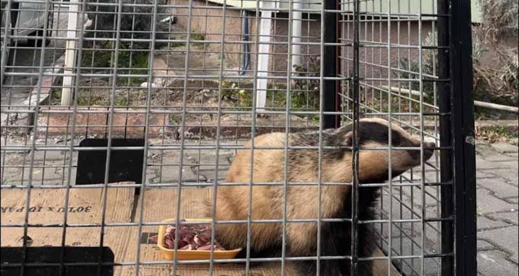 Domuz tuzağına yakalanan porsuk kurtarıldı
