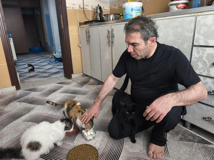 Eve gelen kedilerin tüm bakımlarını yaptığını belirten İrfan Demir, “Kapının önünde bir kediyle başladım. Ona yemini verdim, sahiplendim, oynadım. Bir baktım 2,3 derken sayıları 17'ye kadar çıktı. Tabii ki biz bundan çok memnunuz. Çok da mutlu oluyorum onları öyle görünce. İstedikleri zaman dışarı çıkıp geri gelebiliyorlar. Pencereyi açmışım onlara. İçeride sıcak bir yuva var ve bütün tedbirlerimizi aldık onlar için. Mamasından, kumundan, her şeyine kadar dört dörtlük. Gelip temizliğini ben yapıyorum bu arada. Banyolarını da ben yaptırıyorum. Eğleniyorum, boş vakitlerimde stresimi onlarla atıyorum. Onlarla çok güzel eğlenceli vakit geçiyorum” diye konuştu.