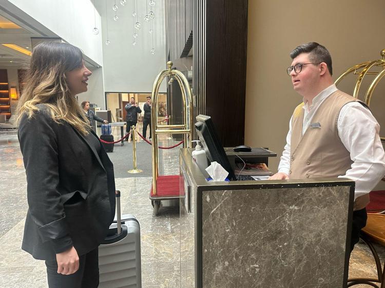 Baran Turan, "10 yıl kadar İtalyan mutfağında komi elemanı olarak çalıştım. Sonra iş değiştirmek istedim ve buraya bellboy olarak geçtim. Türkiye Down Sendromu Derneği bana burayı önerdi. Sevgili iş koçum Ayşenur Hanım, buradaki gelişmemi 2 hafta kadar takip etti.